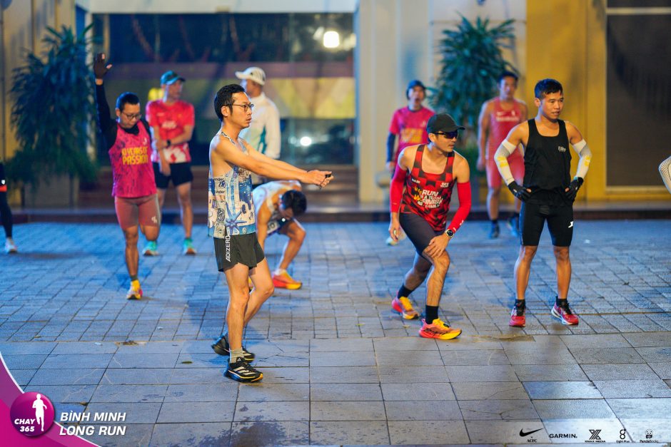 Các anh khởi động và làm nóng cơ thể, điều này vô cùng cần thiết trước khi vào bài chạy dài.