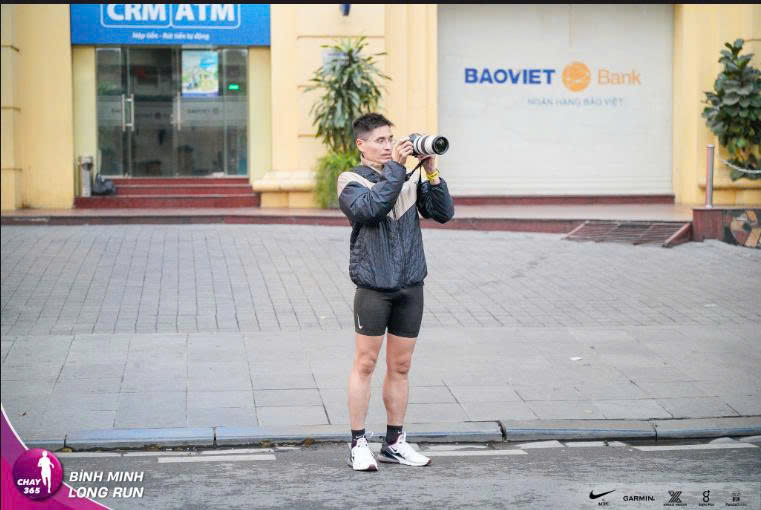 Còn đây là hình ảnh anh Linh làm việc như một Nhiếp ảnh gia, cặm cụi điều chỉnh ống kính chụp cho anh chị em runners sáng nay.