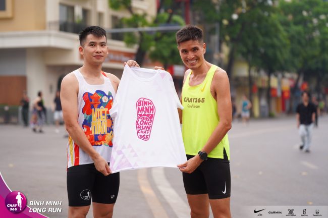 Đồng hành cùng ý chí của các runner luôn là sự tiếp sức tận tâm từ anh Việt . Cảm ơn anh Việt – đại diện Công ty Thực phẩm Fohla Miền Bắc đã dành tặng những trái chuối ngọt lành để anh em ‘hồi máu’ kịp thời sau bài Long Run. Bên cạnh nguồn năng lượng ngọt lành ấy, đường chạy tuần này còn thêm phần rực rỡ bởi sắc áo mới. Chay365 xin gửi lời cảm ơn chân thành đến anh Huy Lê về những chiếc áo đồng phục thiết kế vô cùng ý nghĩa dành cho BQT, trạm Nước, team Platinum và NAG.